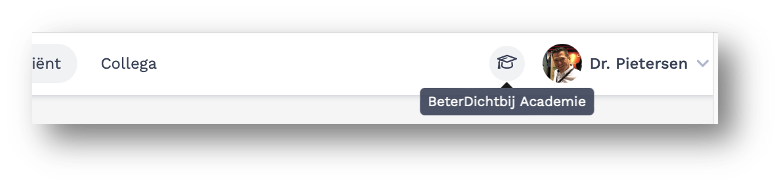 Voor zorgprofessionals die het BeterDichtbij platform gebruiken hebben we de link naar de BeterDichtbij Academie een mooie, duidelijke plek gegeven in de bovenbalk; rechtsboven in het webplatform. Daarmee zijn de kennisvideo’s, de antwoorden op veelgestelde vragen en ontwikkelingen van het BeterDichtbij platform handig toegankelijk!
